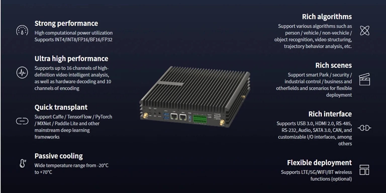 Intelligent analysis of 8 channels of HD video;Supporting mixed-precision computing
